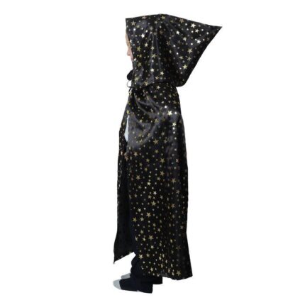 Карнавальный плащ с капюшоном чёрный с золотыми маленькими звёздами атлас, длина 85 см