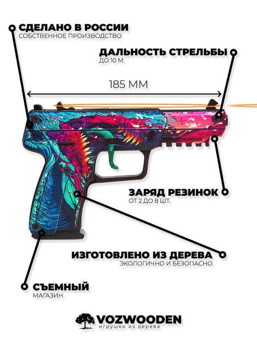Игрушечный деревянный пистолет VozWooden Active Five-seveN (FN) Скоростной Зверь (резинкострел) для фанатов игры CS:GO или Standoff 2 в реальной жизни.