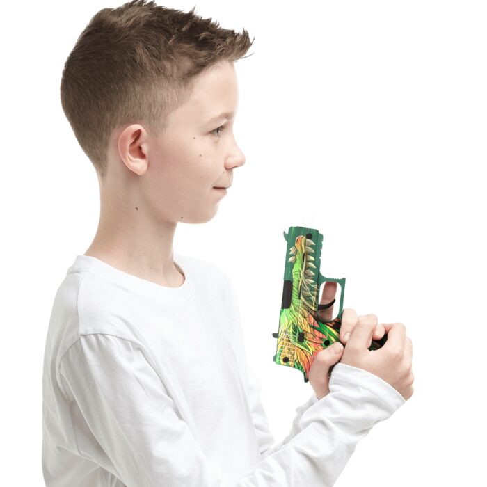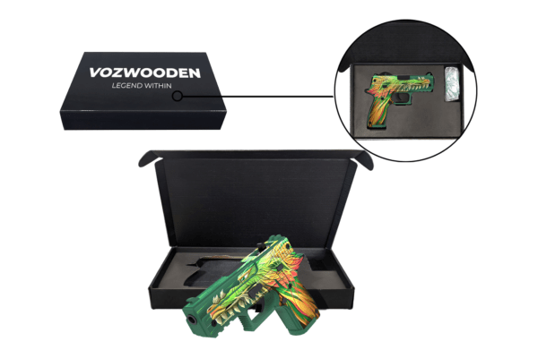 Редкий и очень красочный скин Forest spirit не оставит равнодушным ни одного ценителя эксклюзивных предметов. Рисунок выполнен стойкой краской с максимальной детализацией. В своих руках вы почувствуете всю силу мифического лесного существа, изображенного на корпусе пистолета: на темно-зеленом фоне зеле-красно-оранжево-желтый дракон, излучающий мудрость и невероятную энергию.
