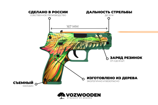 Игрушечный деревянный пистолет VozWooden Active Р250 / P350 Лесной Дух (Стандофф 2 резинкострел) для фанатов игры Standoff 2