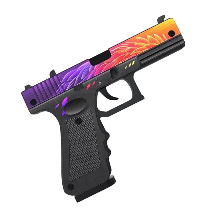 Практически в каждом боевике, соревновательном шутере или батл-рояле присутствует хотя бы один пистолет из семейства Glock. Standoff 2 не стал исключением: игрокам стороны атаки в начале раунда выдаётся стандартный G22. Многие игроки недолюбливают его из-за небольшого урона, впрочем, средние характеристики с лихвой компенсируются скинами на это оружие. В фокусе — G22 | Nest. В переводе с английского «nest» означает «гнездо», так что разноцветные градиентовые перья не просто дополняют дизайн, а предупреждают, что может вылететь птичка. Может быть, даже феникс.