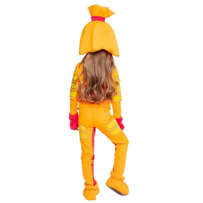 Карнавальный костюм Симки ярко-оранжевый, именно такого цвета эта мультяшная героиня.